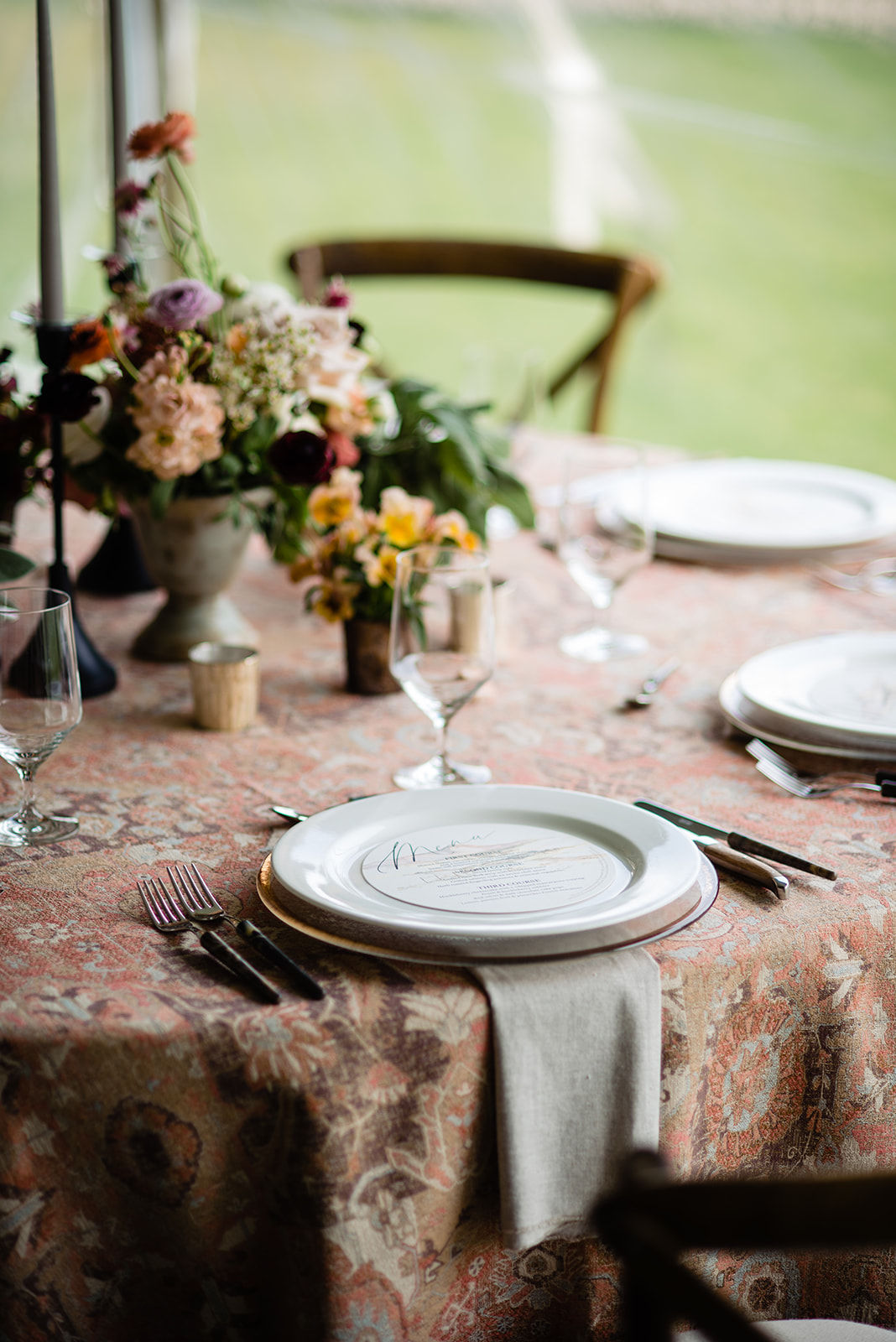 PLACE SETTINGS: Chargers, napkin rings, menus + place cards